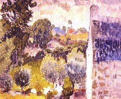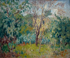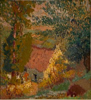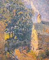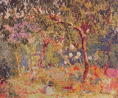 Avec la Chaise et arrosoir dans le jardin nous sommes de nouveau partagés entre le regard réaliste sur des objets auxquels nous sommes attachés et la méditation panthéiste que la Nature et la couleur peuvent nous inspirer.