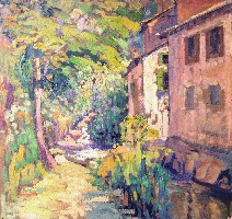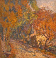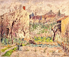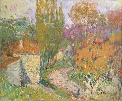 L’Automne et le Printemps à Verdelais forment un véritable diptyque peint en 1931, et le Printemps est exposé à L’Atelier en 1932 ; le tournant du chemin peut nous conduire à des associations réalistes de lieux de notre histoire, ou à une rêverie symbolique sur l’avenir chargé de mystère ; un mur totalement aveugle, comme à Bernille ou à Cavalaire, occupe le côté gauche, tandis qu’un paysagisme abstrait occupe toute la moitié droite : ce motif qui peut paraitre banal est étonnant…