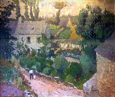 A Baurech ou Cambes, deux temps très séparés marquent ce changement. Au Finistère, l’évolution se fait en accéléré avec l’Eglise d’Esquibien exposée au Salon de L’Atelier de 1928, qui développe déjà sa recherche sur la matière abstraite des murs, mais sans couche de préparation, et les Falaises à Beuzec où l’on retrouve la même texture, la même lumière, et l’abstraction complète d’une falaise fractale, avec sa lumineuse sous-couche, l’année suivante. La même facture se retrouve d’emblée avec la Maison au-dessus de la Méditerranée à Cavalaire , la même année, dans le même élan.