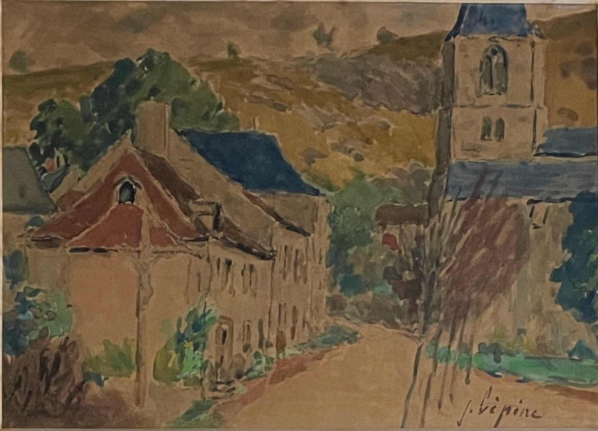Rue et clocher hauteur 21 cm, largeur 28 cm Typologie de sujet : – – – – – |