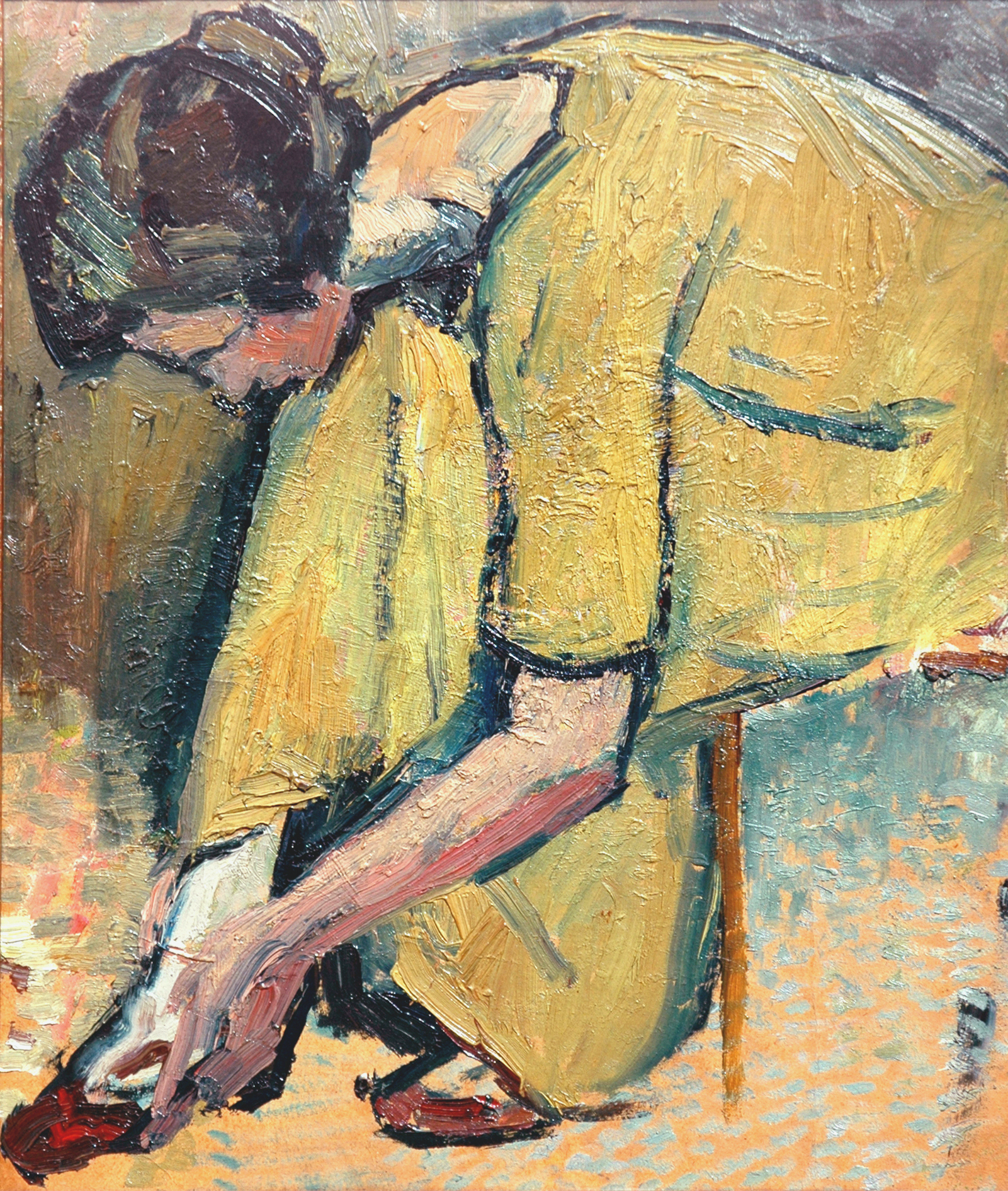 Femme jaune se chaussant hauteur 41.5 cm, largeur 35.5 cm Typologie de sujet : – – – – – |