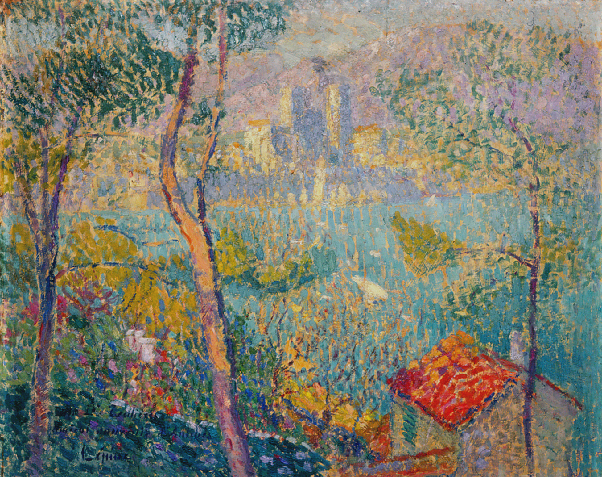 La baie d’Antibes, Harmonie bleue hauteur 52.5 cm, largeur 62.5 cm Typologie de sujet : Fort d’Antibes Ancienne collection Docteur Goigoux – – – – |