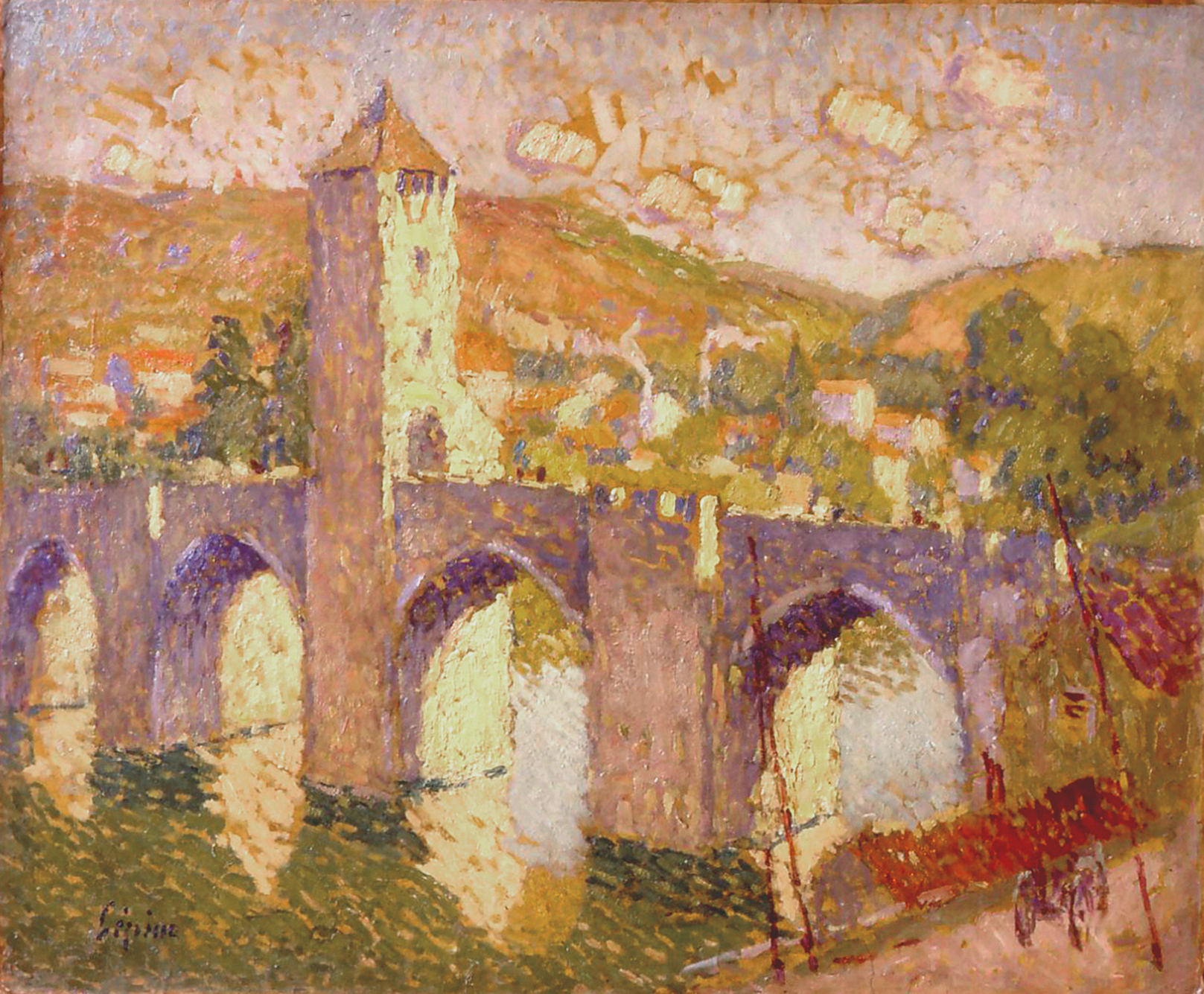 Le pont de Cahors (à contre jour) hauteur 60 cm, largeur 72 cm Typologie de sujet : Pont Valentré – – – – |
