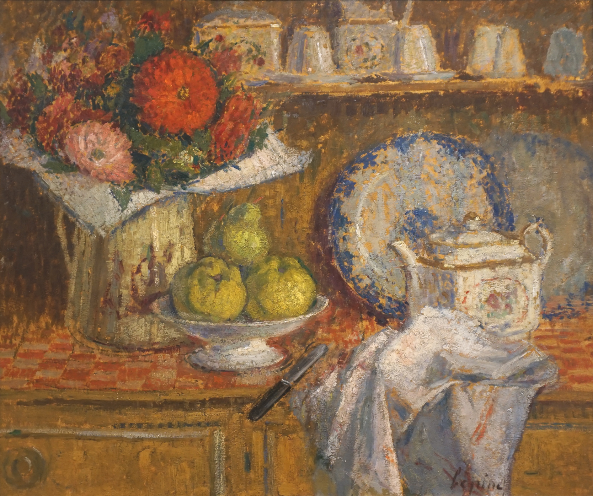Le service à thé, bouquet et poires hauteur N/D cm, largeur N/D cm Typologie de sujet : – – – – – |