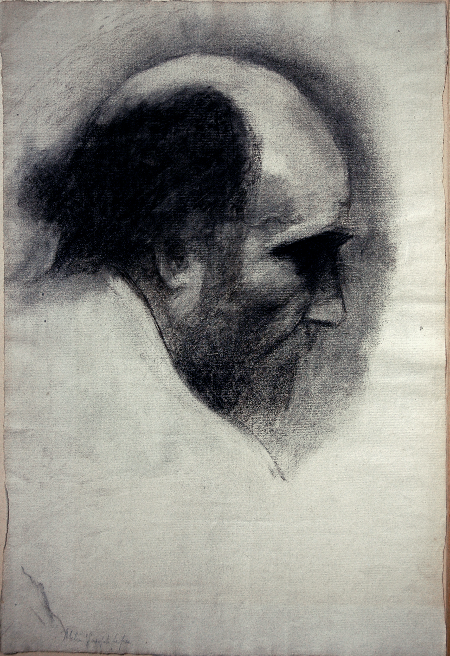 Tête d’homme chauve de profil