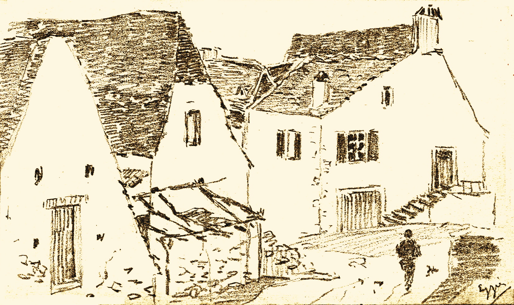 Les Eyzies, maisons et personnage hauteur 11.5 cm, largeur 19 cm Typologie de sujet : – – – – – |