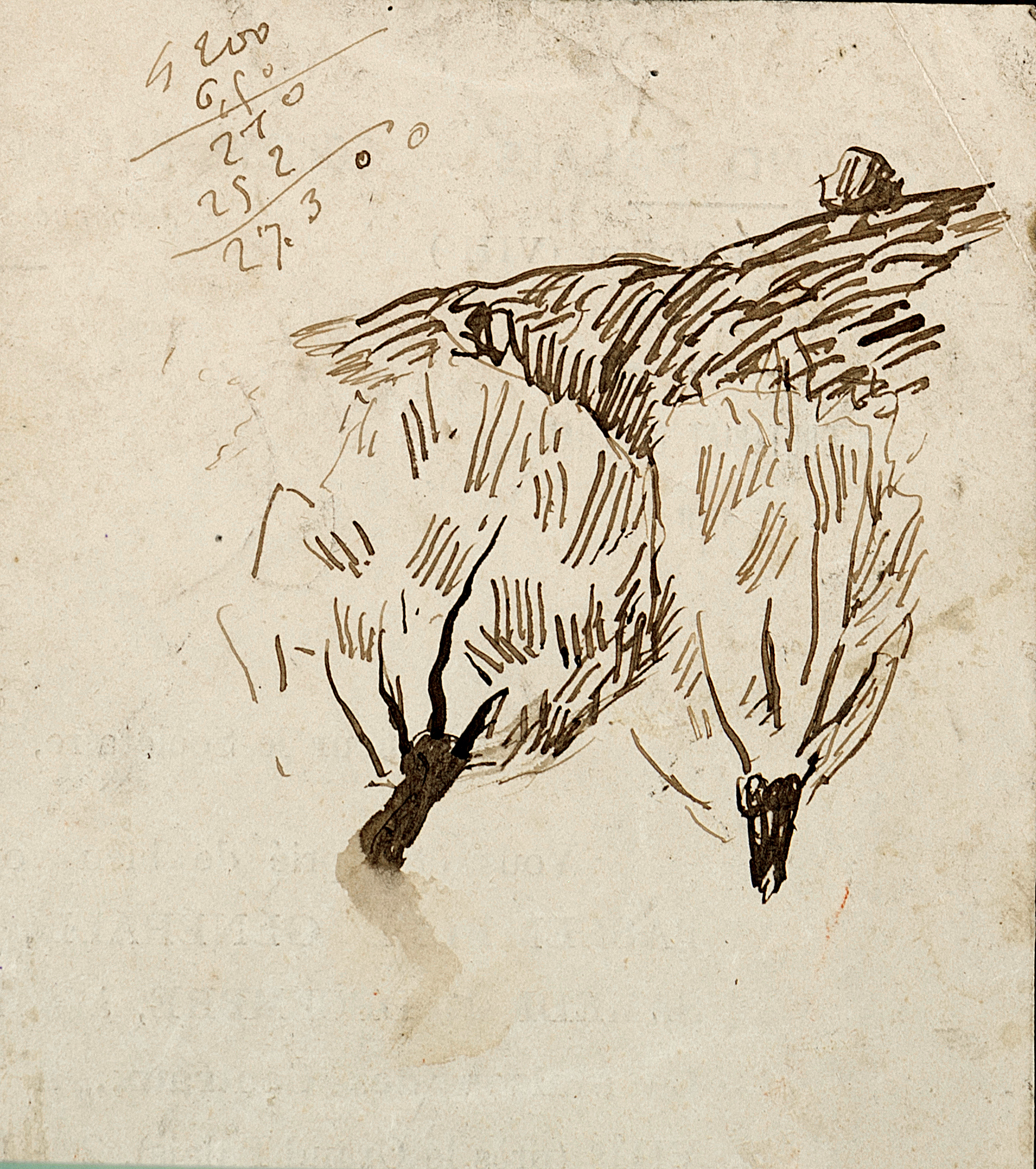 Au verso, Entame d’un courrier de la Société National[e des Beaux Arts ?] adressée à un sociétaire (J. Lépine ?) pour l’assemblée générale du samedi 17 décembre [1933 ou 1939 ?], depuis le 1 rue Jean-Goujon Paris 8ème arrondissement – – – –