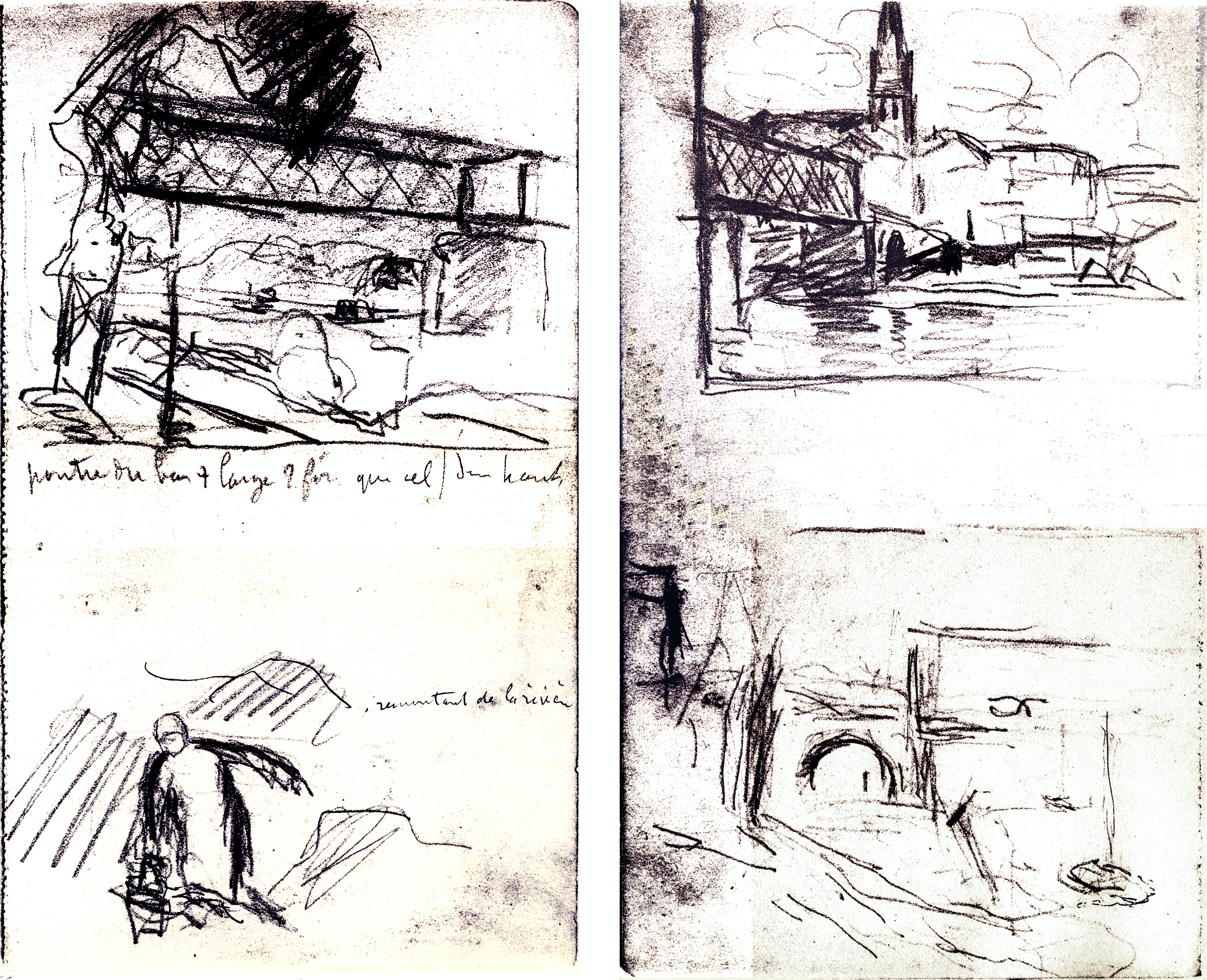 Le pont de Branne ; Femme remontant de la rivière hauteur 12.5 cm, largeur 21 cm Typologie de sujet : – – – – – |