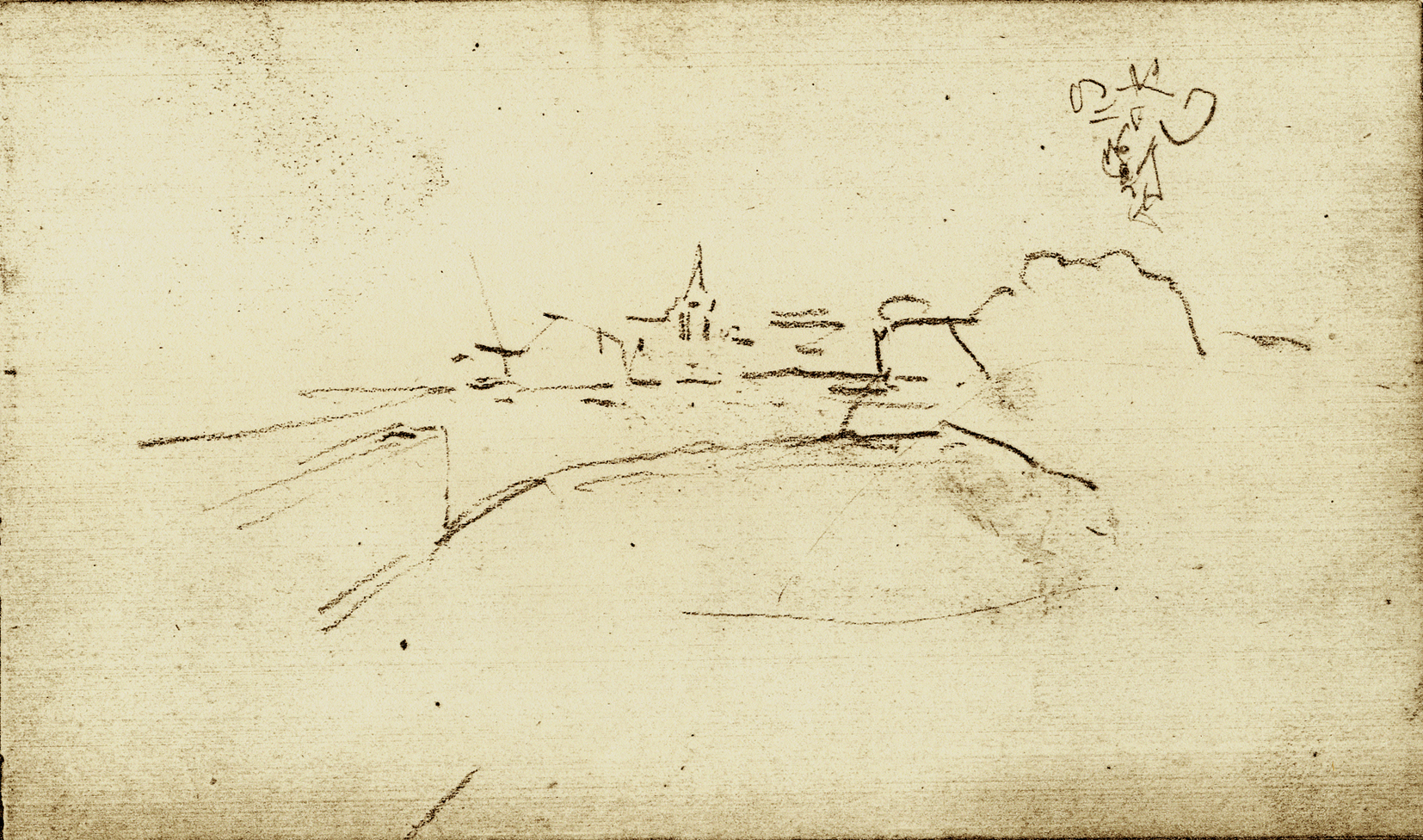 Esquisse de village hauteur 11.5 cm, largeur 19 cm Typologie de sujet : – – – – – |