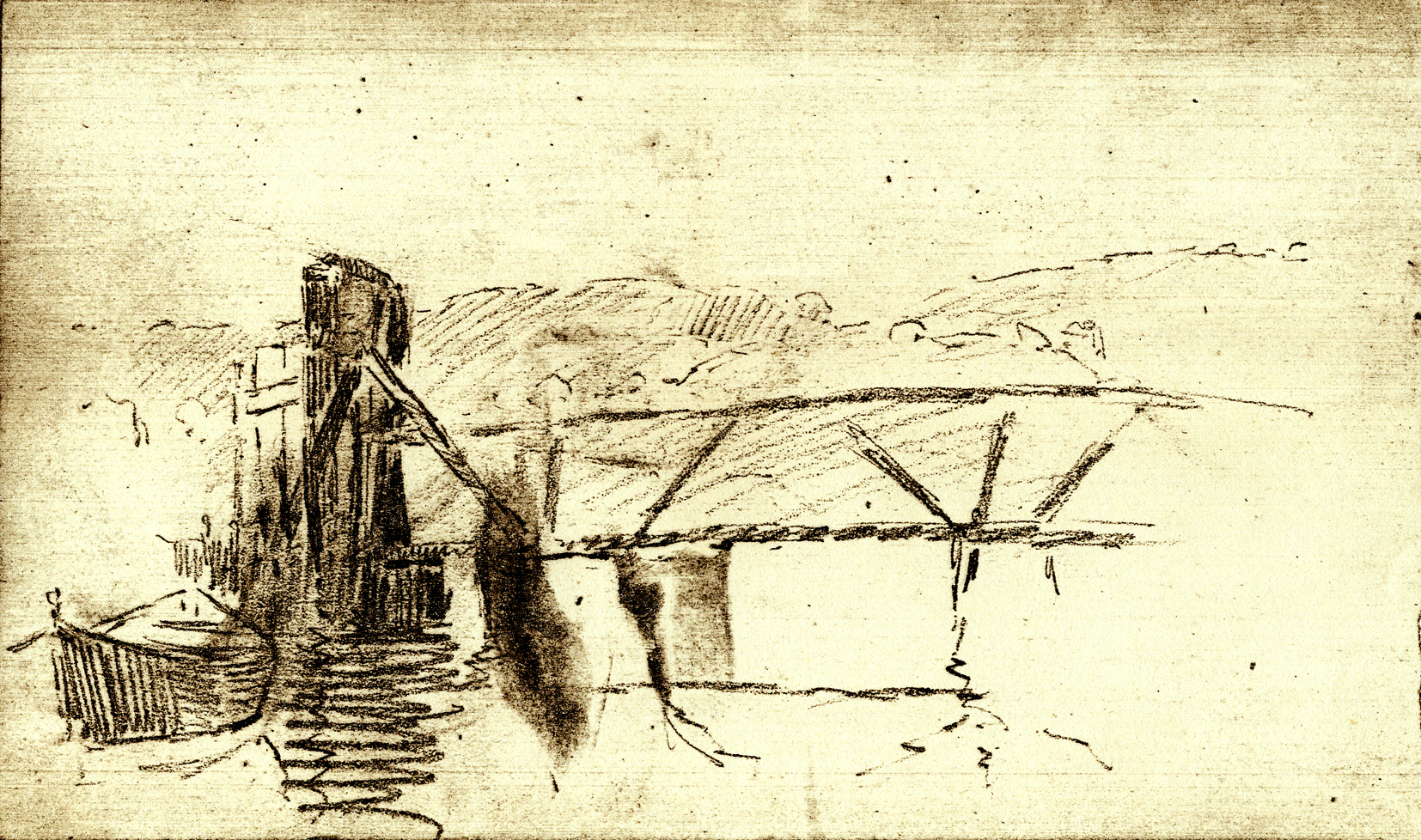 Paysage au pont métallique hauteur 11.5 cm, largeur 19 cm Typologie de sujet : – – – – – |