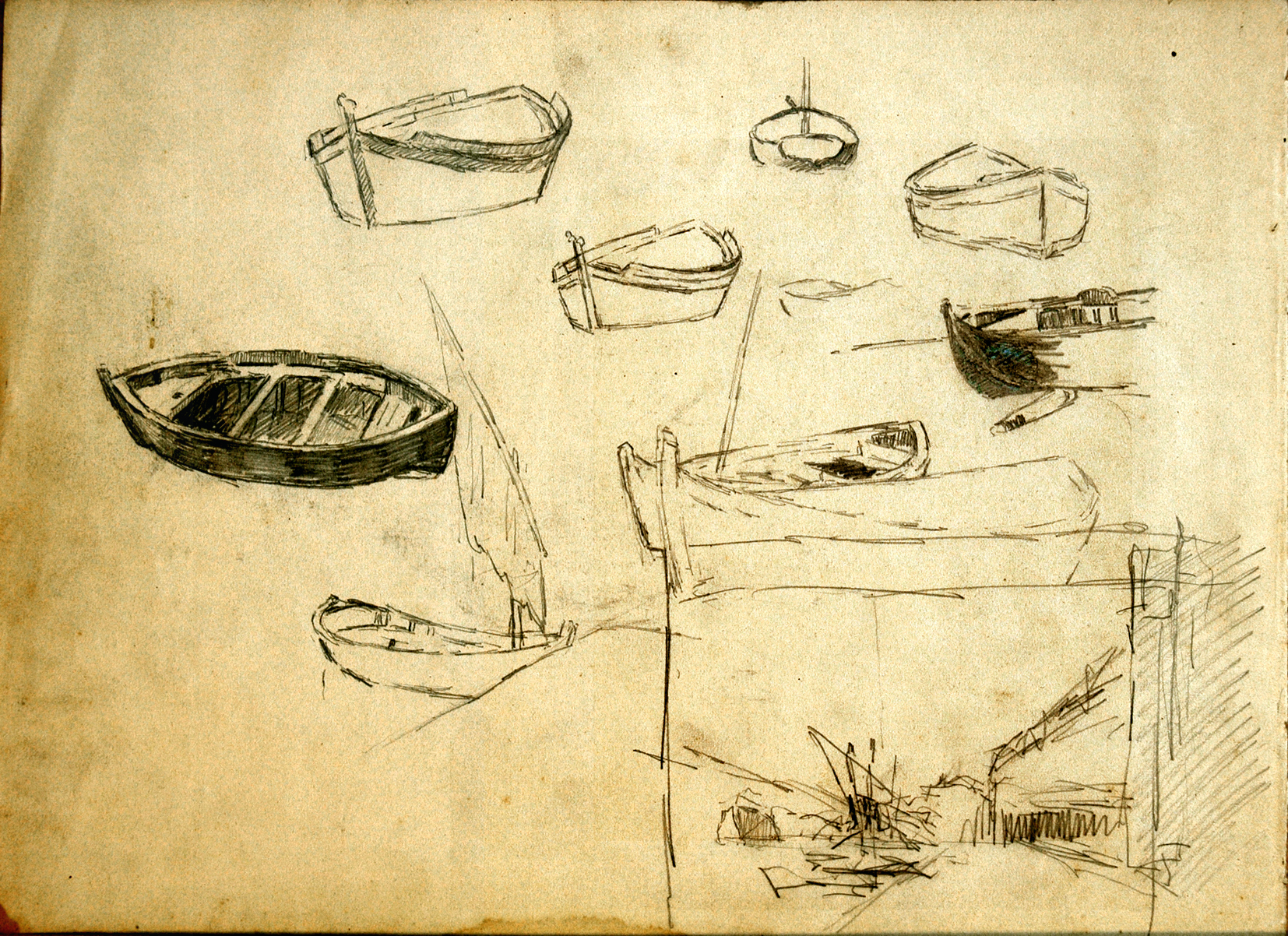 Etudes de bateaux, et esquisse de composition