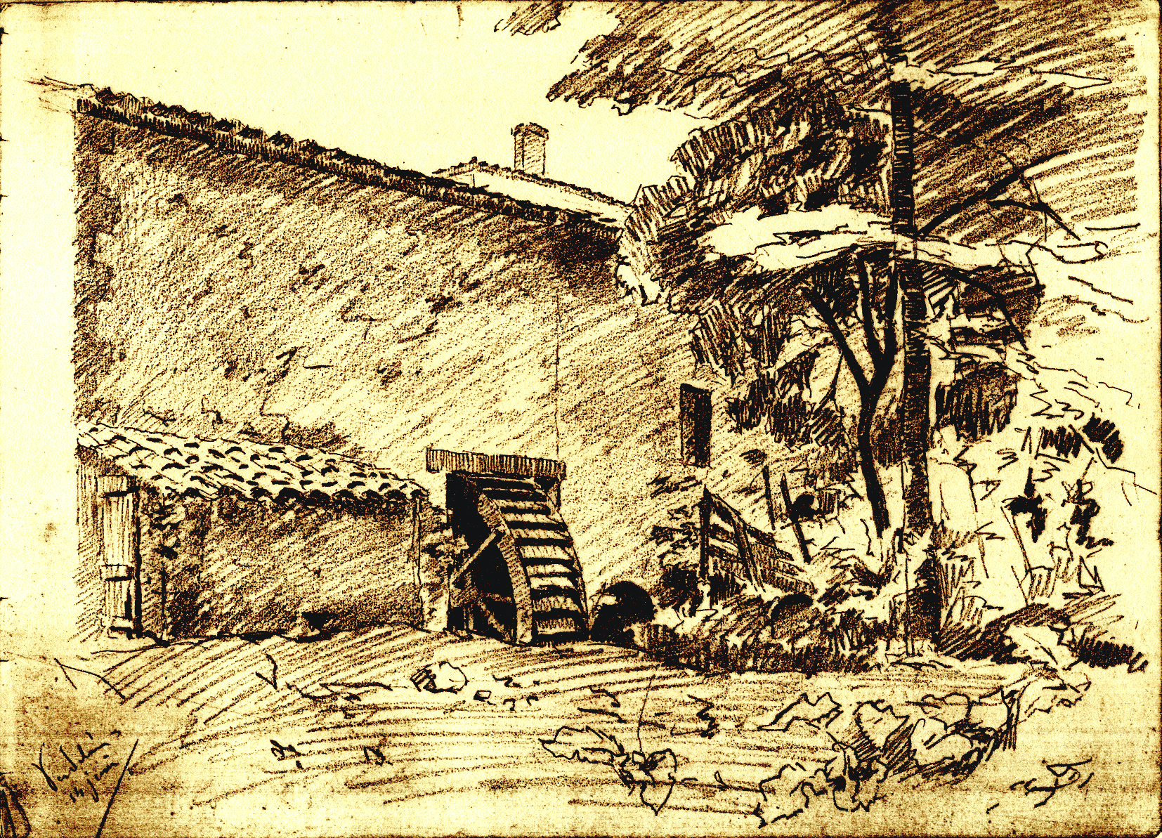 Verdelais, la roue du moulin hauteur 25 cm, largeur 34.5 cm Typologie de sujet : – – – – – |
