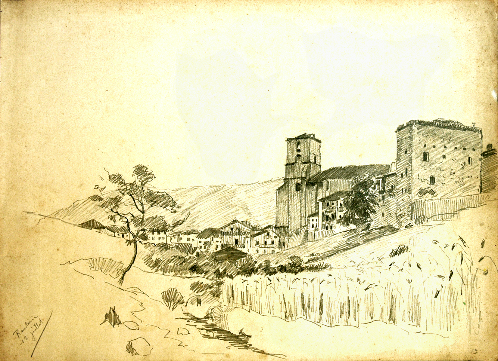 Daté sur l’oeuvre : 12 juillet, situé –