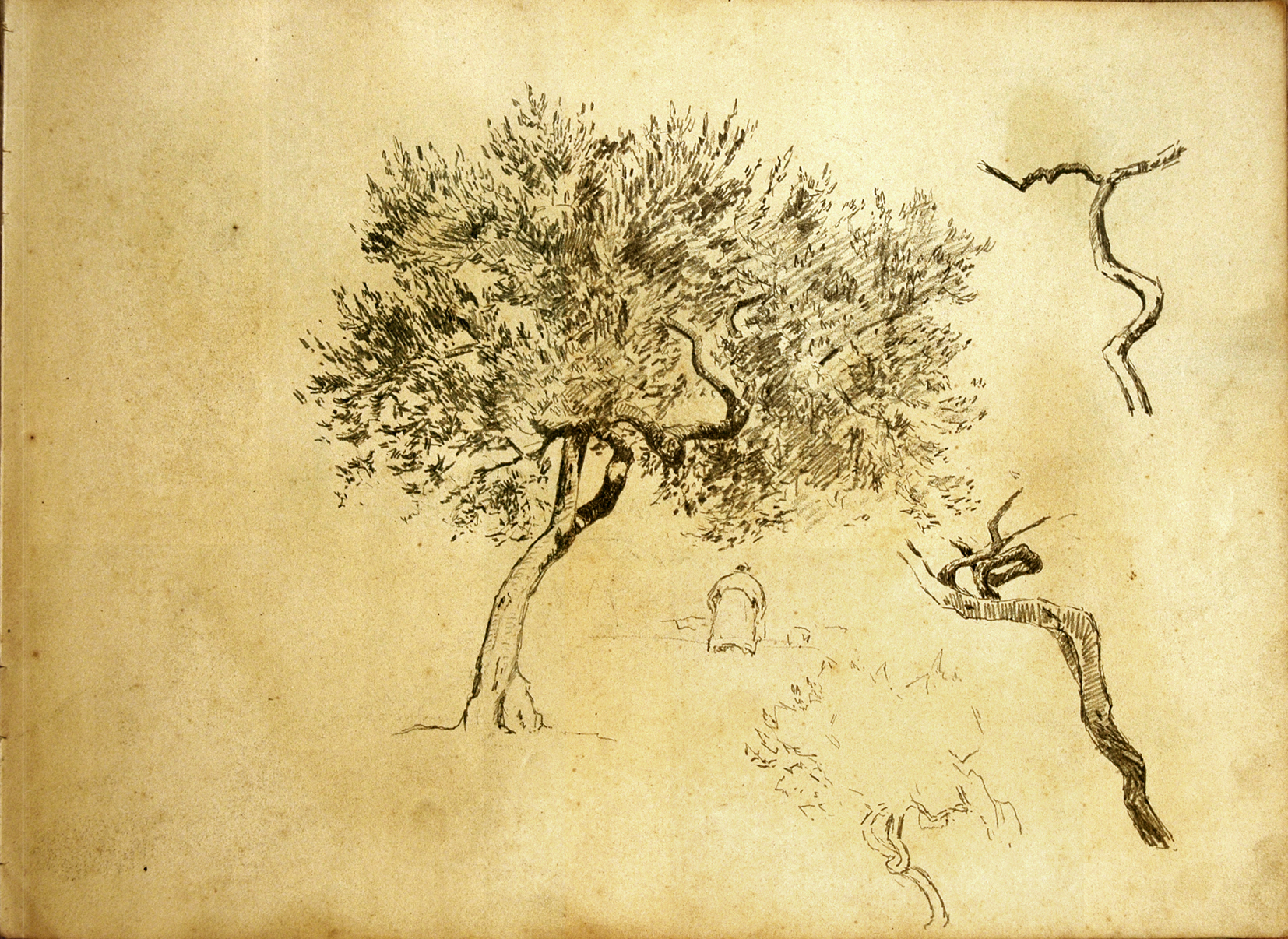 Arbres ; étude de branches ; silhouette de personnage
